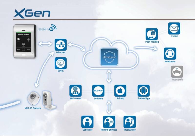 UltraSync is een nieuwe manier om veilig te communiceren met uw beveiligingssysteem. Het zorgt ervoor dat alle informatie van het systeem 24/7 beschikbaar is, in real-time en optimaal beveiligd vanuit een Cloud-omgeving. Deze verbindingsoplossing beantwoordt volledig aan de meeste Europese normen.Het systeem is overal beschikbaar en biedt een 24/7 -dienstverlening vanaf diverse locaties over het grootste en meeste professionele IP -netwerk